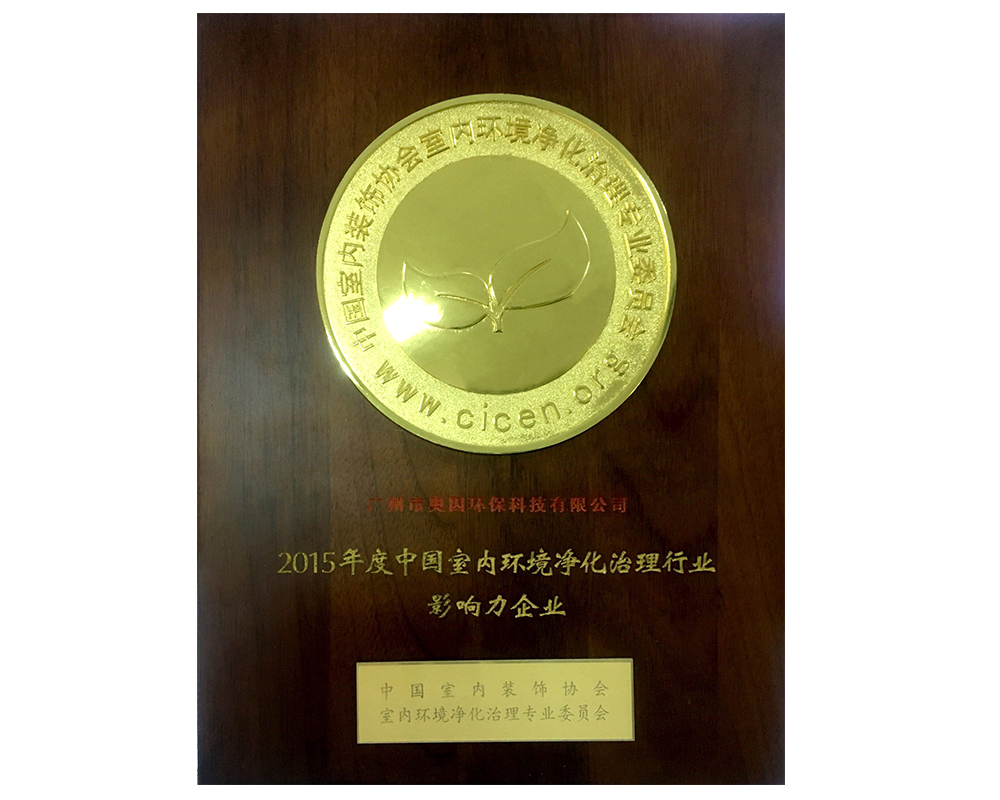 2015年度中國(guó)室內(nèi)環(huán)境凈化治理行業(yè) 影響力企業(yè) 牌匾