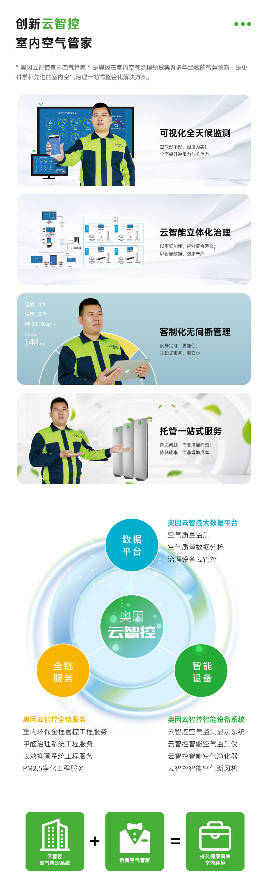 奧因的云智控室內空氣管家,改變了傳統(tǒng)室內空氣治理不可視以及治理缺乏說服力等弊端,讓每一位身處奧因空氣治理空間的人,都能夠對空氣凈化效果眼見為實。
