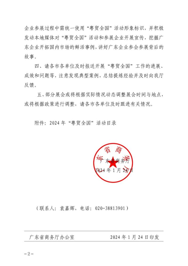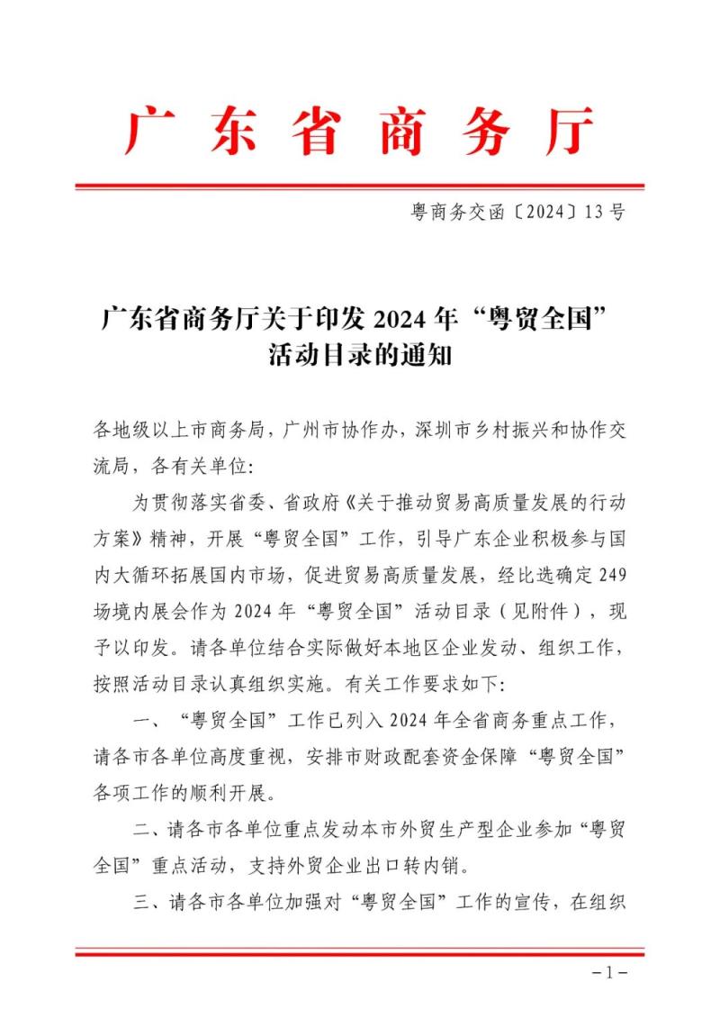 以下是《關于印發2024年“粵貿全國”活動目錄的通知》全文: