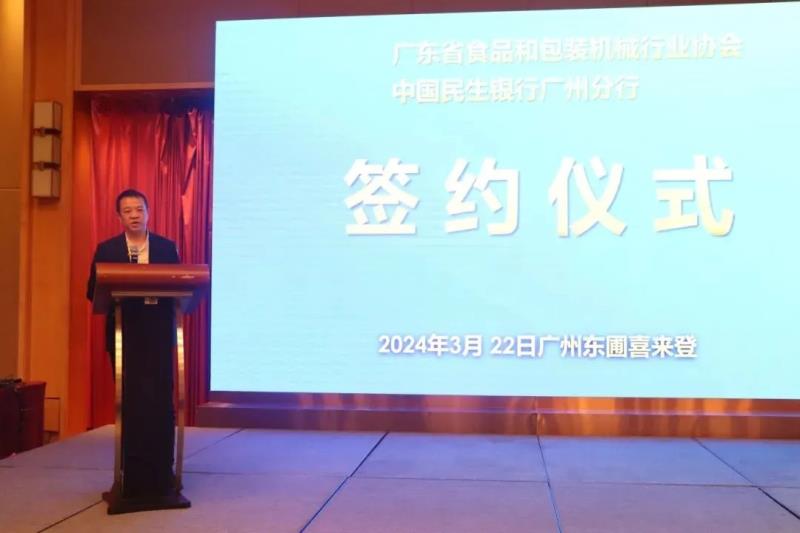2024年3月22日,廣東省食品和包裝機械行業協會2023年年會暨第十二屆輪值會長活動在廣州東圃合景福朋喜來登酒店順利召開。大會由廣東省工業和信息化廳、廣州市科學技術協會、中國創新創業成果交易會辦公室指導;廣東省食品和包裝機械行業協會主辦(以下簡稱“協會”);廣東恒信源智能裝備有限公司、廣東熱景鍋爐有限公司承辦;廣州三凱機電有限公司、廣州琺瑪珈智能設備股份有限公司、中國民生銀行廣州分行、廣東粵創生命高科技孵化器有限公司協辦;廣東駿盈科技有限公司、廣州榮裕智能機械有限公司、廣州市億帆展覽服務有限公司、百度飛槳人工智能產業賦能中心支持舉辦。