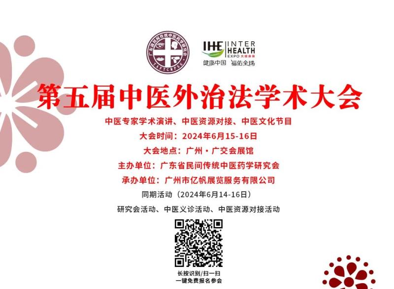 為深入貫徹落實黨中央、國務院關于粵港澳大灣區建設的重大決策部署,打造粵港澳大灣區中醫藥高地,促進民間中醫藥工作者多層次、多學科交流,挖掘保護民間中醫藥特色診療技術,推廣各種獨具特色、行之有效的中醫技法,充分發揮民間中醫積極作用,擴展完善中醫藥服務體系,滿足群眾中醫藥服務需求,凝聚民間中醫藥專家力量,樹立學術自信、文化自信,推進民間中醫藥事業傳承與創新發展,由廣東省民間傳統中醫藥學研究會主辦,廣州市億帆展覽服務有限公司承辦的“第五屆中醫外治法學術大會”、“中醫資源對接會”、“省民間中醫藥學會換屆大會”系列中醫藥論壇會議及現場活動將于2024年6月15日至16日在廣州·廣交會展館C區召開。
