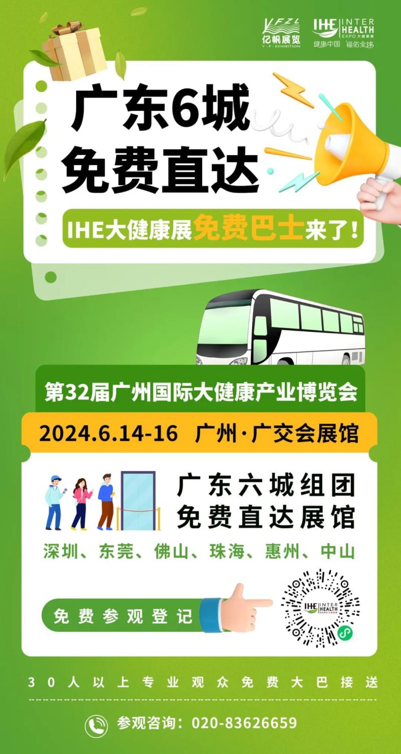 第32屆廣州國際大健康產業博覽會將于2024年6月14-16日在廣州·廣交會展館隆重舉辦。本屆展會匯聚1000+家國內外大健康領軍企業和新銳品牌。展會同期還將舉辦多場論壇會議、商務配對、直播帶貨等專業前沿活動!!!