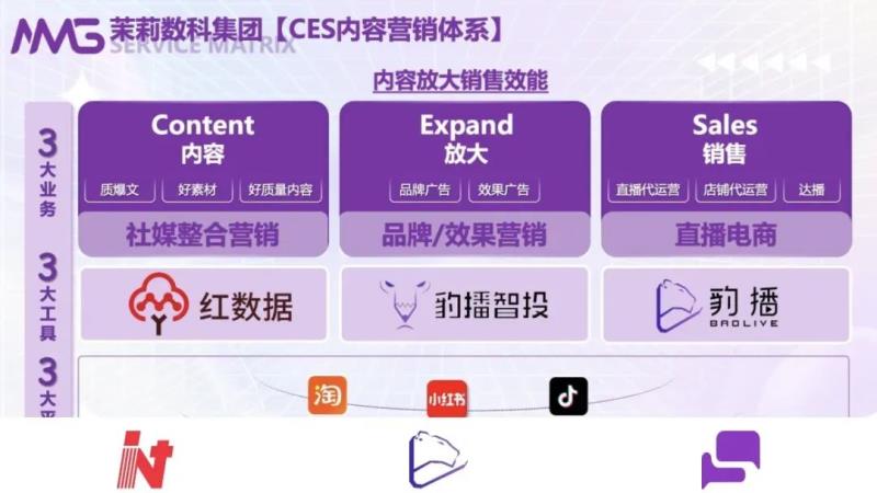 茉莉數科集團是一家以數據驅動策略的電商內容整合營銷公司,主要在淘寶、小紅書、抖音等平臺為品牌提供全域社媒整合營銷、品牌/效果營銷、直播電商代運營等三大服務。擁有行業趨勢敏銳洞察,為制定更精準的營銷策略提供有力支持。持續為客戶提供品牌曝光最大化,資源對接便捷化。堅持以“持續提升營銷效果”為使命,以“成為全球內容營銷領跑者”為愿景,努力幫助更多客戶實現生意增長,為內容電商行業的發展貢獻一份力量。