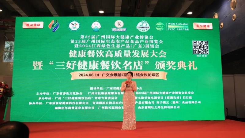 6月14日上午,第32屆廣州國際大健康產(chǎn)業(yè)博覽會健康餐飲高質(zhì)量發(fā)展大會之健康纖體交流盛會及“三好健康餐飲名店“頒獎典禮,在廣州琶洲會展熱烈舉行。