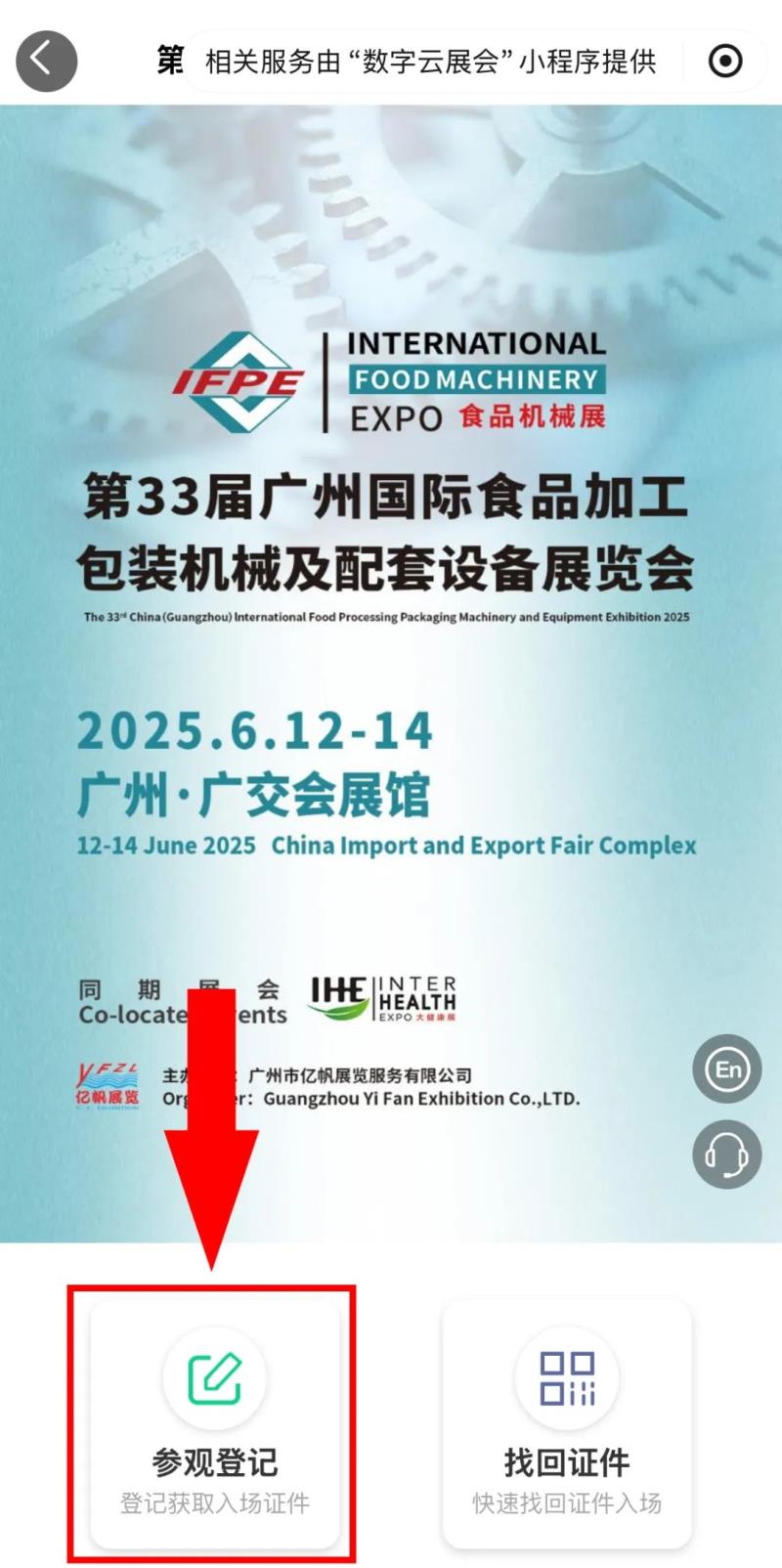 01掃碼關(guān)注公眾號(hào)STEP1:掃碼關(guān)注展會(huì)公眾號(hào)“IFPE食機(jī)展”。 |