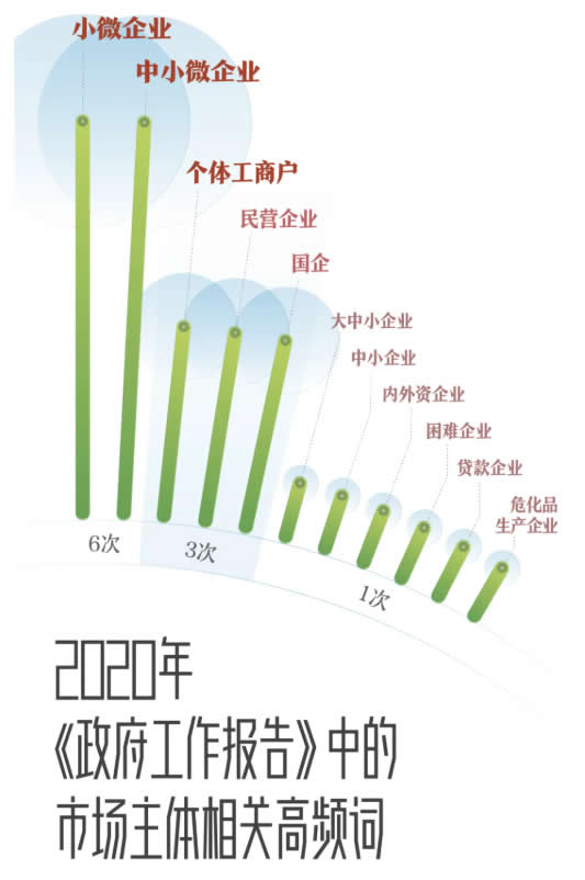 在今年的報告中,跟市場主體相關的詞里,“小微企業”提及次數最多,總計12次。其中6次為單獨提及,還有6次是列入“中小微企業”一詞中。足以證明對“小微企業”這一就業主要“容納器”的重視。