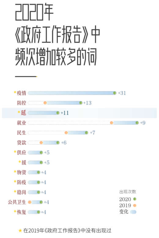 和2019年對比,2020年報告里一個突出的新詞就是“疫情”,在今年的報告中出現了31次。