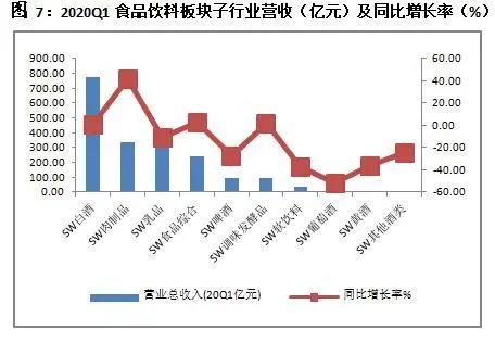 2020年第一季度受疫情影響,食品飲料行業實現營業收入合計1917.9億元,同比增長0.2%。實現歸母凈利潤合計390.7億元,同比微降0.66%。