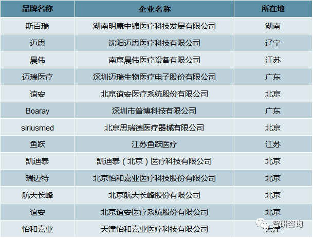 中國(guó)呼吸機(jī)主要生產(chǎn)品牌及其生產(chǎn)企業(yè)基地統(tǒng)計(jì)