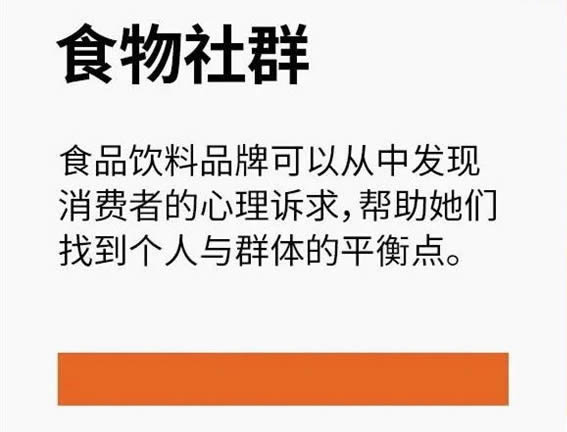 “新冠疫情增進了消費者對社區的關注。消費者認識到相互支持的重要性,消費者將出于社交和友情以志同道合者社區形式進行組織。食品、飲料和餐飲品牌可以充分利用自身定位,與消費者可能聯系到身份的共同興趣和愛好保持一致,品牌可以積極地把粉絲個體匯聚起來。按照共同擁有的品牌加以界定,社區將擴大人們的社交圈并帶來大有作為的集體方式?!?/p>
