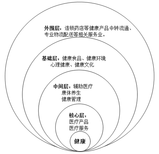 根據與人類健康關聯度的不同層次,可以把廣義健康產業劃分為: