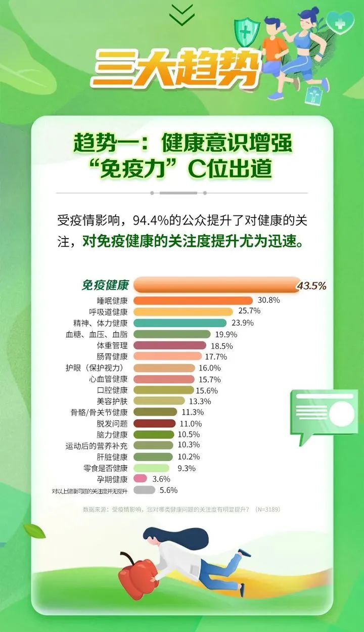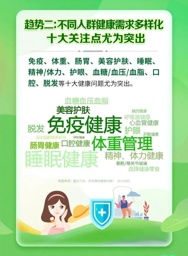 近幾年,受新冠疫情等因素影響,國民健康意識迅速提升,“免疫力”一躍成為眾人愿望清單的榜首,但整體人群的健康狀況依然不容樂觀,不同人群的痛點、盲點不一。