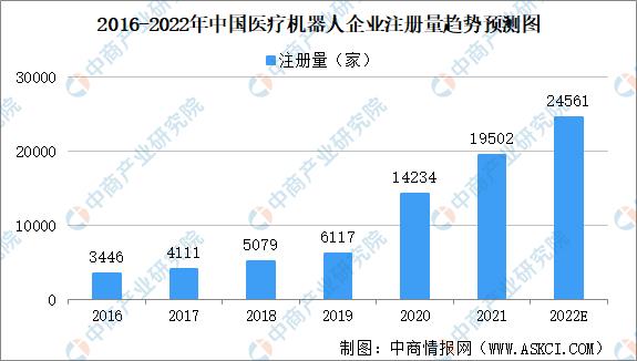 醫(yī)療機(jī)器人在臨床應(yīng)用重要價(jià)值愈加被重視,市場(chǎng)規(guī)模持續(xù)擴(kuò)大,資本青睞醫(yī)療機(jī)器人產(chǎn)業(yè)。近年來(lái),中國(guó)醫(yī)療機(jī)器人相關(guān)企業(yè)注冊(cè)量持續(xù)增加,2021年醫(yī)療機(jī)器人相關(guān)企業(yè)注冊(cè)量19502家,同比增長(zhǎng)37.0%。疫情之下,醫(yī)療機(jī)器人行業(yè)快速發(fā)展。預(yù)計(jì)2021年醫(yī)療機(jī)器人相關(guān)企業(yè)注冊(cè)量將達(dá)24561家。