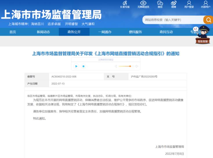 日前,上海市市場監管局發布《上海市網絡直播營銷活動合規指引》(以下簡稱“《指引》”),旨在規范網絡直播營銷活動,保障消費者合法權益,維護公平競爭的市場秩序,促進網絡直播營銷活動健康發展。