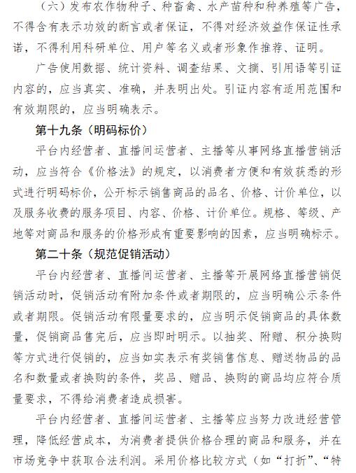 在網絡直播營銷活動中醫療、藥品、醫療器械、農藥、獸藥、保健食品、特殊醫學用途配方食品等法律、行政法規規定應當事先進行廣告發布審查的商品和服務,不適宜以網絡直播形式營銷。