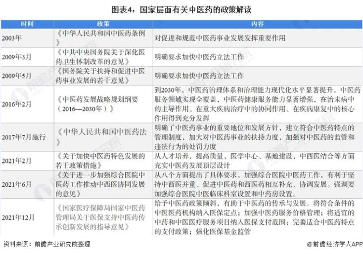 規劃層面,從2016年國務院印發《中醫藥發展戰略規劃綱要(2016—2030年)》到《中醫藥法》的頒布實施,從《中共中央國務院關于促進中醫藥傳承創新發展的意見》的出臺到《政策措施》的發布,國家政策對中醫藥事業發展作出的全面制度設計,彰顯了大力我國發展中醫藥事業的決心。
