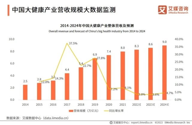 艾媒咨詢也在《2022-2023年全球與中國大健康產業運行大數據及決策分析報告》中指出,我國大健康產業營收規模可觀,整體保持穩定增長,2021年營收規模達8.0萬億元,增幅8.1%,預計2024年將達9.0萬億元。受新冠疫情影響,我國大健康產業市場需求大幅上升,吸納資本潛力巨大,2021年中國醫療健康產業投融資金額達4169.44億元。此外,人工智能、大數據、物聯網、互聯網等新技術的加入,為大健康產業增添新業態、新場景、新增長,對大健康產業的發展產生深遠影響,未來發展前景廣闊。