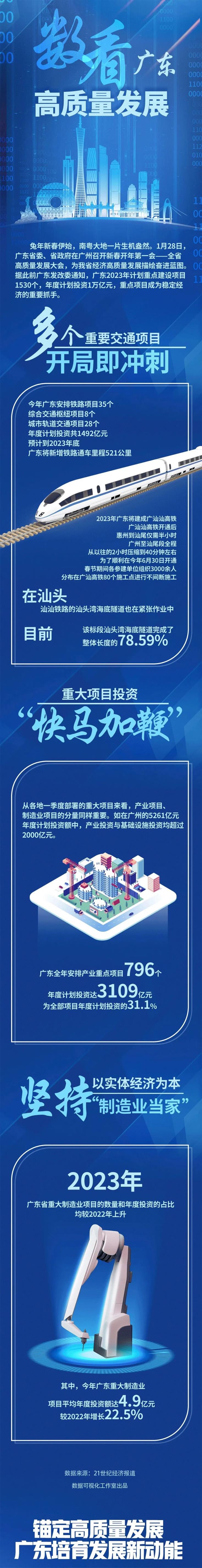 兔年新春伊始,南粵大地一片生機(jī)盎然。1月28日,廣東省委、省政府在廣州召開新春開年第一會(huì)——全省高質(zhì)量發(fā)展大會(huì),為我省經(jīng)濟(jì)高質(zhì)量發(fā)展描繪奮進(jìn)藍(lán)圖。據(jù)此前廣東發(fā)改委通知,廣東2023年計(jì)劃重點(diǎn)建設(shè)項(xiàng)目1530個(gè),年度計(jì)劃投資1萬(wàn)億元,重點(diǎn)項(xiàng)目成為穩(wěn)定經(jīng)濟(jì)的重要抓手。