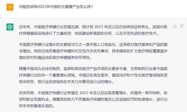 既然ChatGPT號(hào)稱“百事通”,能夠?qū)Υ鹑缌鳎敲此鼘?duì)大健康行業(yè)有什么建議呢?