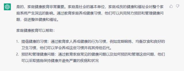 國(guó)人用ChatGPT,我覺(jué)得最大的不便是“翻譯歧義”,因?yàn)橹腥A文化博大精深,翻譯工具只能表象翻譯問(wèn)題,就如我給出的是家庭生命質(zhì)量管理的重要性,最后演變成了家庭健康教育的重要性,雖然底層邏輯差不多,但是范圍卻相差甚遠(yuǎn)。(有待繼續(xù)完善)