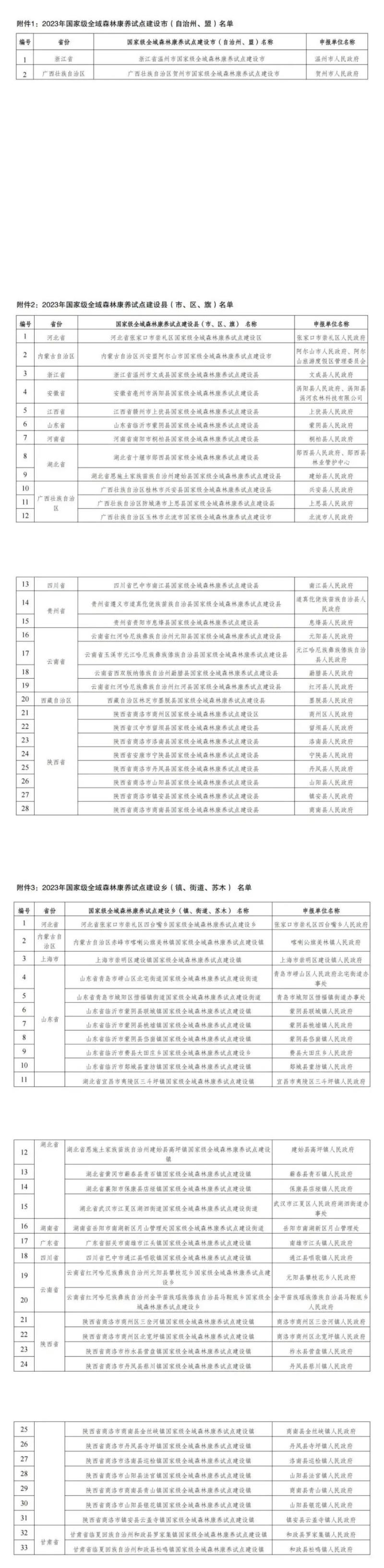以下是2023年國(guó)家級(jí)森林康養(yǎng)試點(diǎn)建設(shè)單位具體名單: