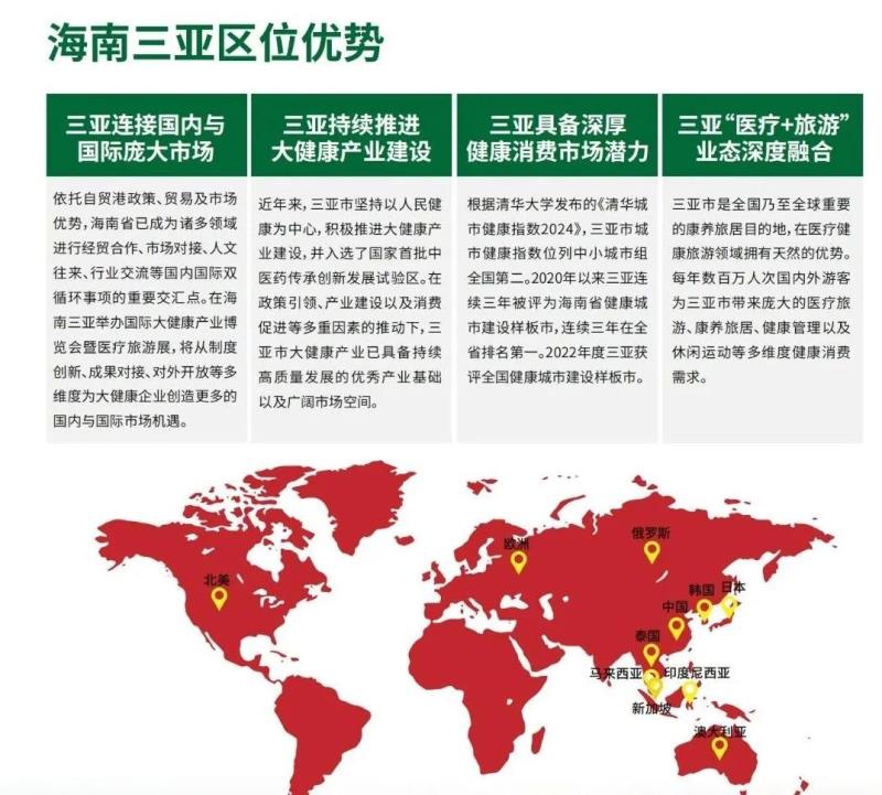 大會同期舉辦大健康旅游展,匯聚中醫藥及藥食同源產品、海洋滋補品、健康養生產品、旅游與健康服務、特色專業醫療服務、養老及康養服務、生物制藥及制品、數字健康設備及儀器、抗衰美容及睡眠健康、生產及包裝機械等品類的領軍企業和新銳品牌,旨在引領行業趨勢,促進產業融合,加強交流合作,助力企業依托海南自貿港加速拓展國內與國際龐大健康及旅游市場。