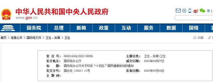 5月20日,國務(wù)院辦公廳印發(fā)“十四五”國民健康規(guī)劃。規(guī)劃提出發(fā)展目標(biāo),到2025年,衛(wèi)生健康體系更加完善,中國特色基本醫(yī)療衛(wèi)生制度逐步健全,重大疫情和突發(fā)公共衛(wèi)生事件防控應(yīng)對能力顯著提升,中醫(yī)藥獨特優(yōu)勢進一步發(fā)揮,健康科技創(chuàng)新...