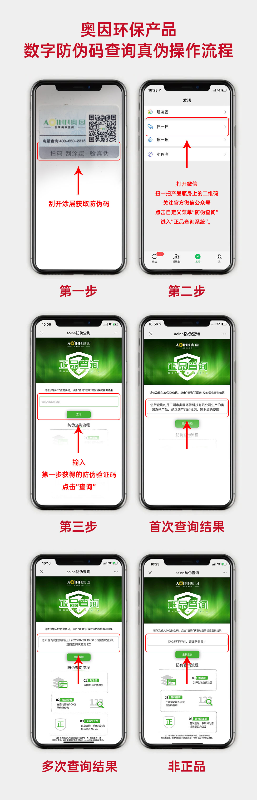 首先,關(guān)注奧因官方微信公眾號(hào)奧因環(huán)保;其次,在自定義菜單欄中找到“防偽查詢”,點(diǎn)擊即可進(jìn)入三重防偽系統(tǒng),根據(jù)網(wǎng)頁(yè)提示輸入相關(guān)信息,即可獲得查詢結(jié)果。